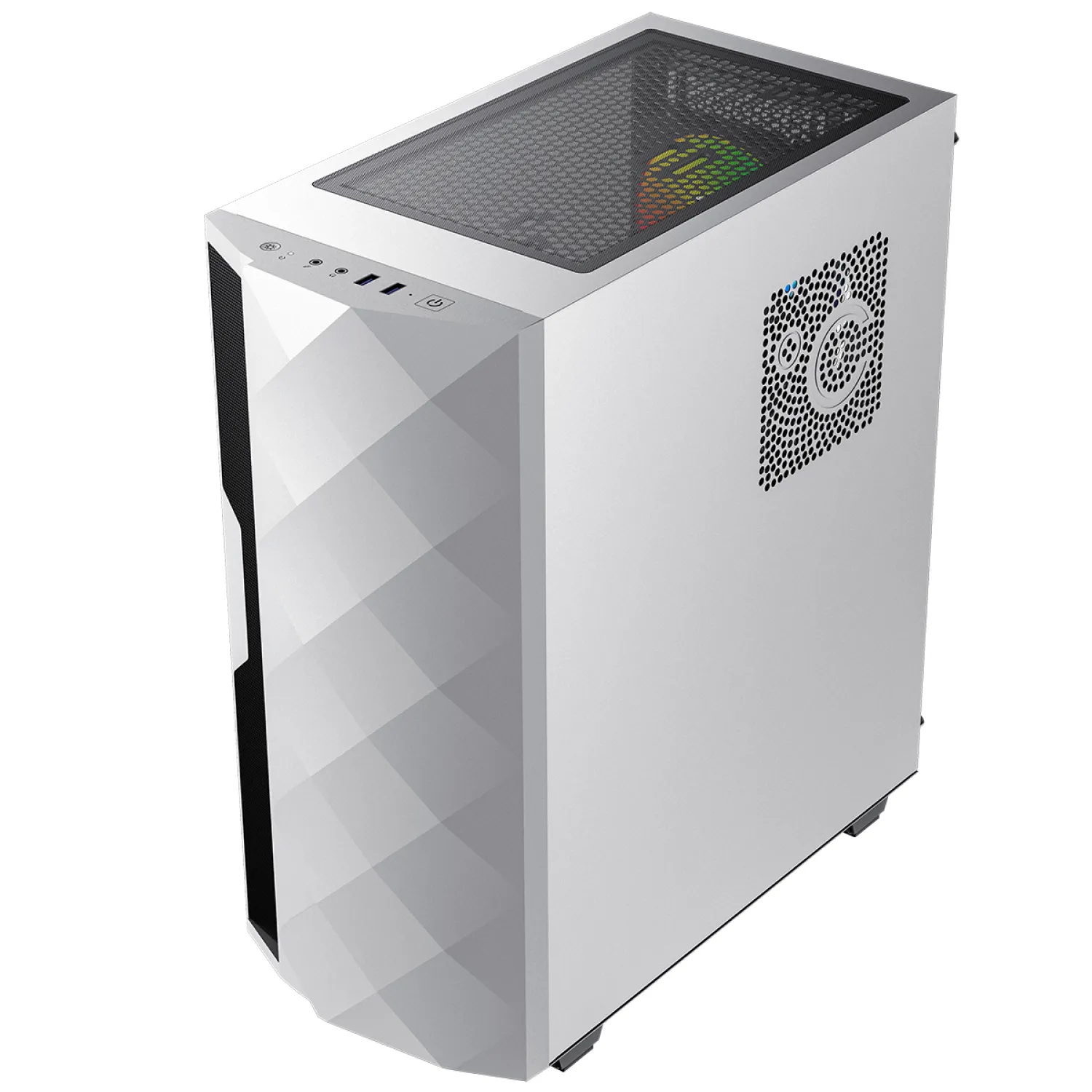 GameMax DIAMOND CP WHITE یک کیس مدرن و جذاب با طراحی الماسی، فضای داخلی کاربردی و تهویه حرفهای است.