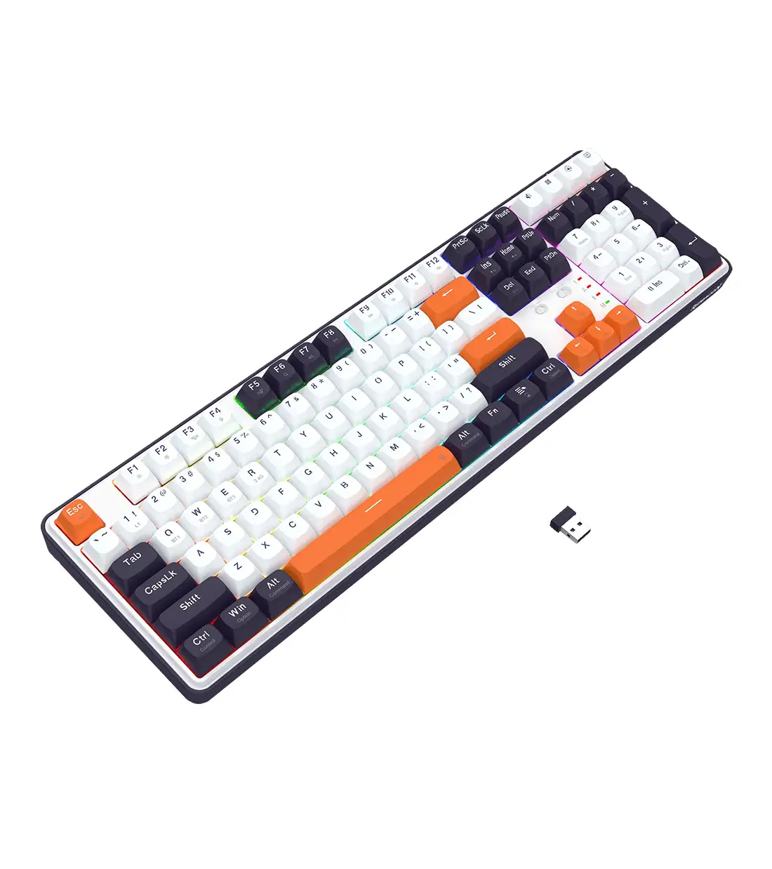 - ✅ طراحی Full-Size با ۱۰۸ کلید – شامل نامپد عددی، کلیدهای F، کلیدهای میانبر اختصاصی برای افزایش بهرهوری.